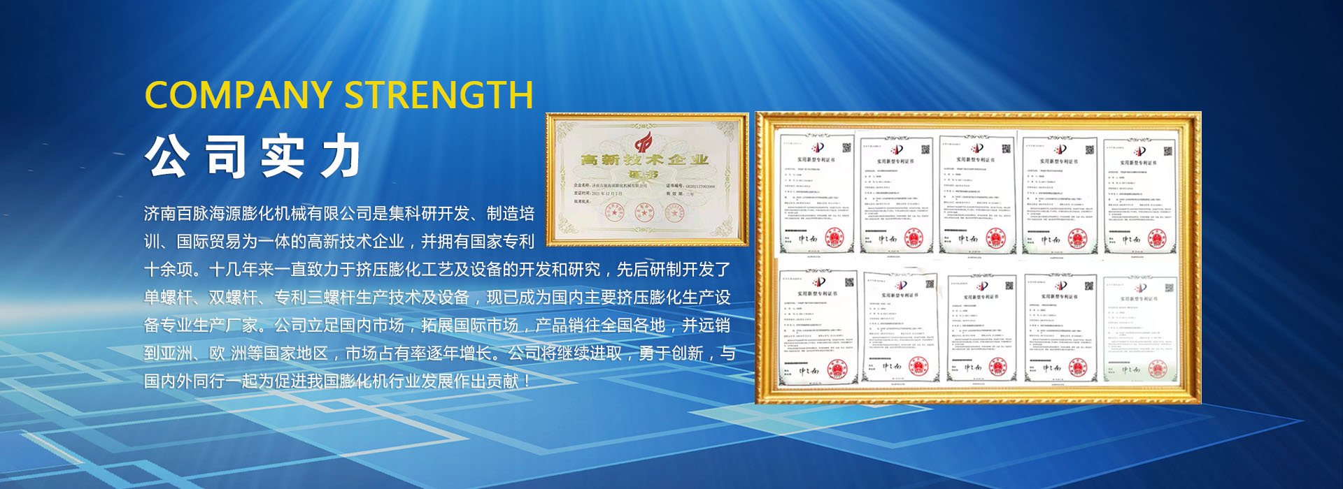 济南百脉海源膨化机械有限公司坐落在山东省会—济南的东部,瓷都淄博的西邻,南北接壤 309 国道与济青高速,地理位置优越,交通便利,文化底蕴敦厚,是国家能源设备的重要生产基地,也是宋代著名女词人—李清照的故乡。